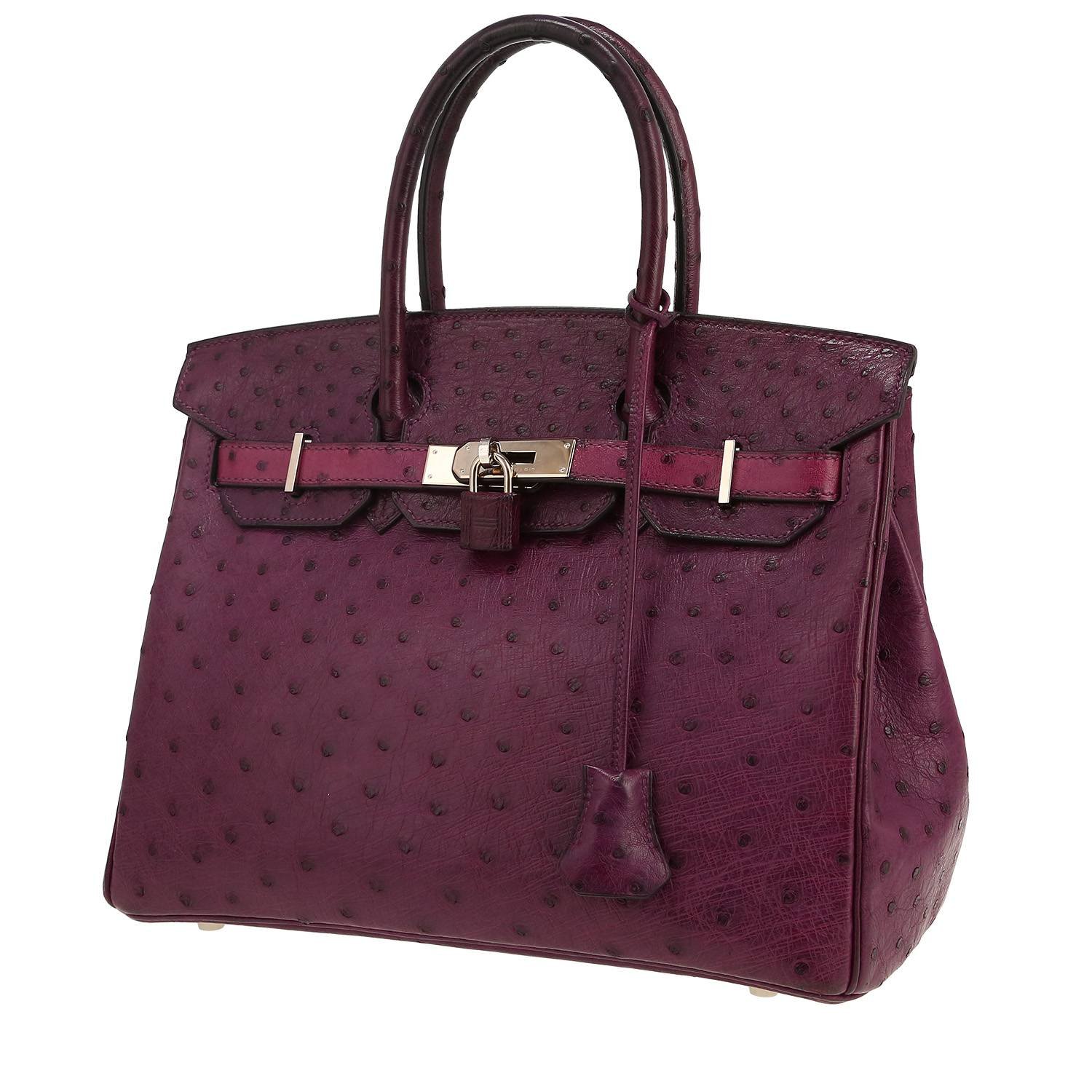 Wonderful Hermès Birkin 30 cm handbag in purple ostrich leather, hardware in palladium metal, double handle in purple ostrich leather allowing the bag to be worn in the hand.