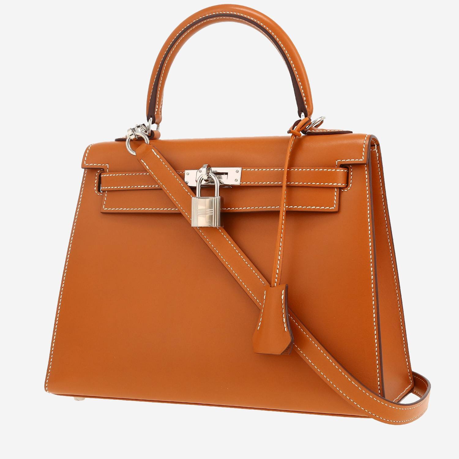 Hermes Kelly 25 cm handbag in gold box leather