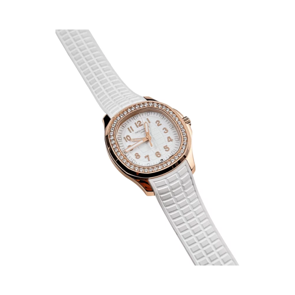 Patek Philippe Aquanaut 5269/200R-001 Luce Matted White Dial Diamond-Set Bezel 38mm 18K Rose Gold White Rubber Straps Unisex Watch