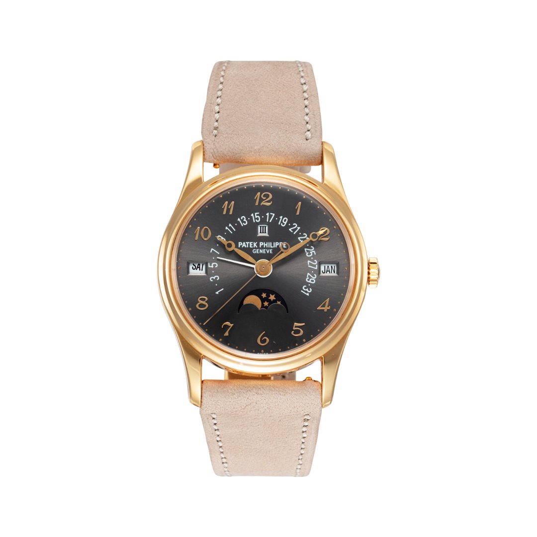 Patek Philippe Retrograde 5050J-023 Yellow Gold Perpetual Calendar Moon Phases 35mm Gray Sunburst Dial Ladies Watch –