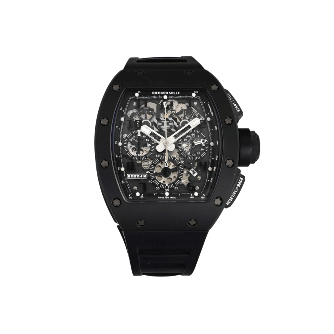 Richard Mille RM011 CA-TZP Felipe Massa “Black Phantom” Flyback Chronograph 40mm x 50mm Black Ceramic Rubber Straps Men’s Watch offered by Luxury Souq.