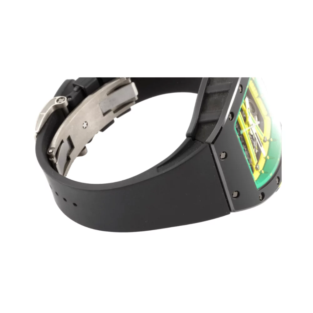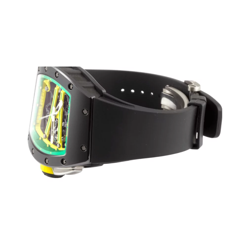 Richard Mille RM 61-01 Yohan Blake The Beast 2 in Green & Yellow Skeleton Dial 50.23 x 42.7mm Black Ceramic Black Leather Straps Men’s Watch. Sold by Luxury Souq.