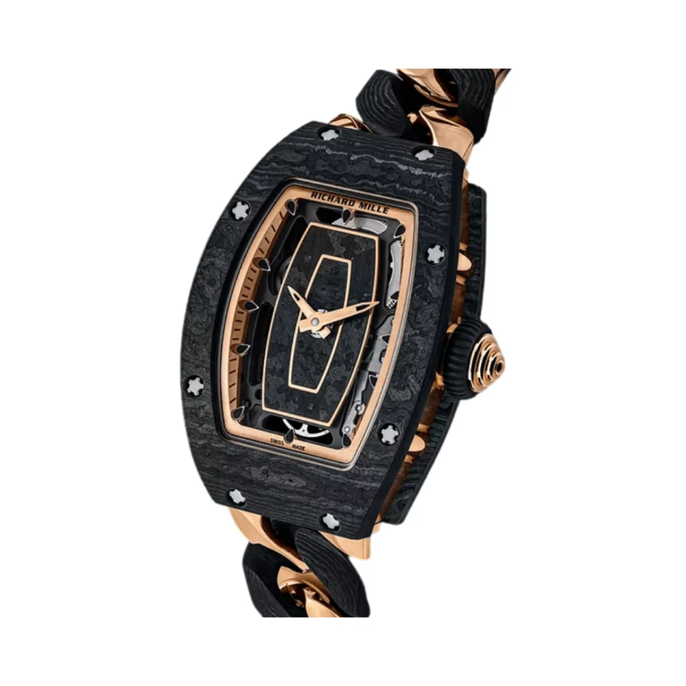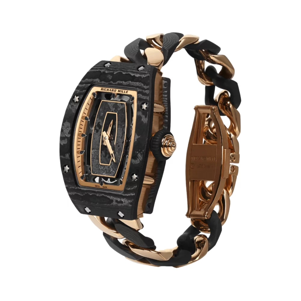 Richard Mille RM07-01 RG-CA Automatic Openlink Elegant ladies’ watch with carbon TPT case, open-link bracelet.