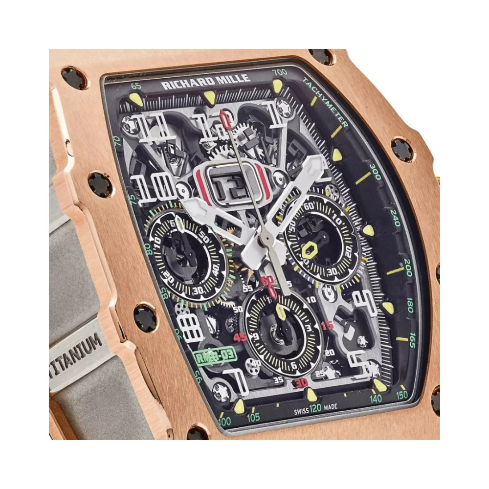 Richard Mille RM11-03 RG Automatic Flyback Chronograph Titanium 44.5mm 18k Rose Gold Black Rubber Straps..
